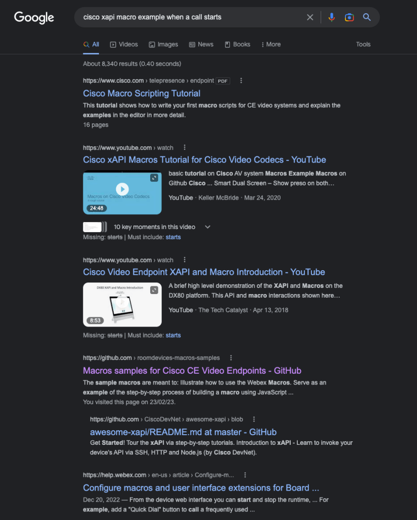 So I took this code, and deployed it on my Webex Codec Pro in my lab, to see if it would do what I wanted. I did of course change the hostname/port/path to the back end I was working with